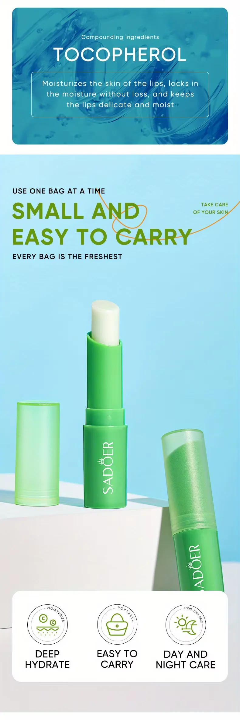 Apply thick at night to soften dead skin on the lips and soften the skin