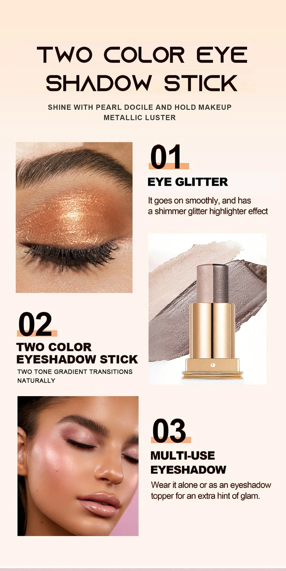 Double Color Eyeshadow Stick Glitter Highlight Shadow Stick Eye Makeup Waterproof Lasting Shimmer Metallic Eyeshadow MakeupSpecification: