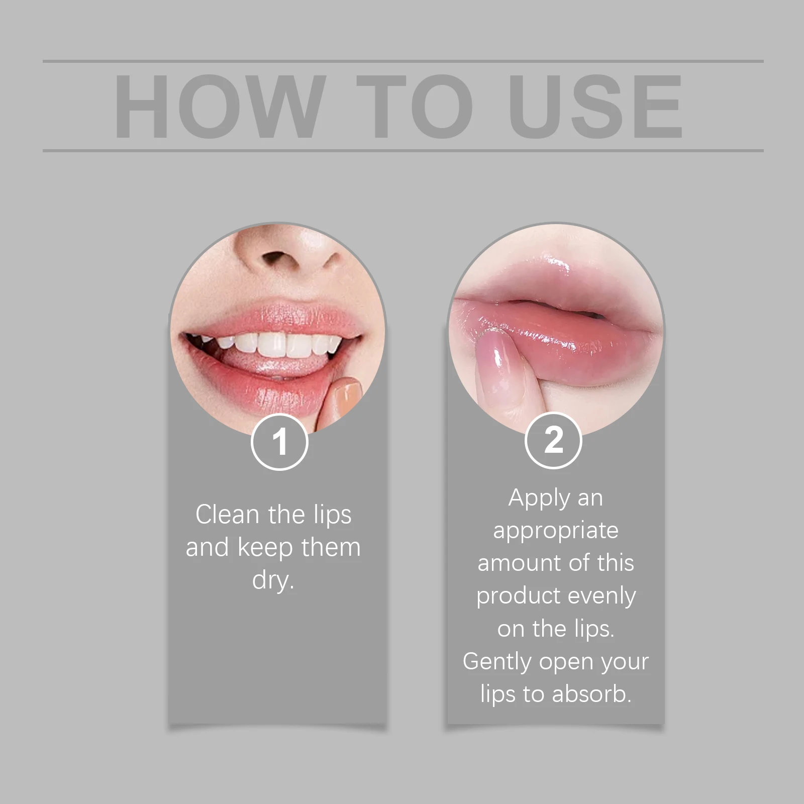 2.Apply an appropriate amount of this product evenly on the lips. Gently open your lips to absorb.